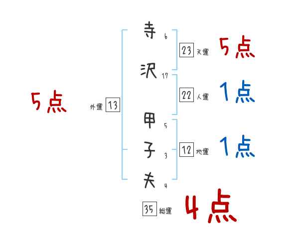 寺沢甲子夫さんの画数の鑑定結果