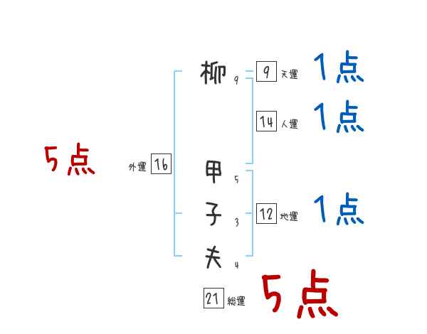 外運![]() | 柳甲子夫さんの外運は16画の5つ星!人望が厚く大きく発展する。逆転成功が見える。 生活面を象徴する運勢です。外部から受ける影響力を表し、結婚運、家庭運や職場、環境への順応性を表します。 |
