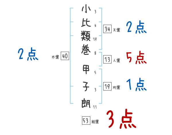人運![]() | 小比類巻甲子朗さんの人運は13画の5つ星!才能に恵まれ人気がある。名声を手に入れる。円満な人生。 性格や才能などを表す2番目に重要な運勢です。人間関係や協調性、社会的な成功に影響します。主に20歳から50歳ぐらいまでの中年期の運勢を表します。 |