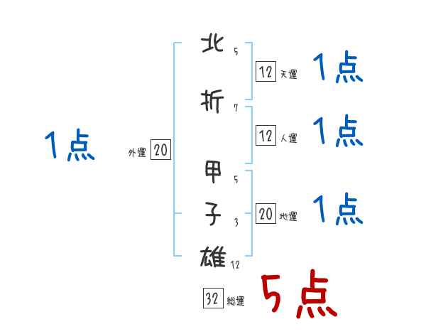 総運![]() | 北折甲子雄さんの総運は32画の5つ星!柔軟性があり成功する。チャンスが多く金運が良い。 あなたの人生を表す1番重要な運勢です。生涯を通じて影響する総合運となり、主に50歳以降の晩年期に影響を及ぼします。 |