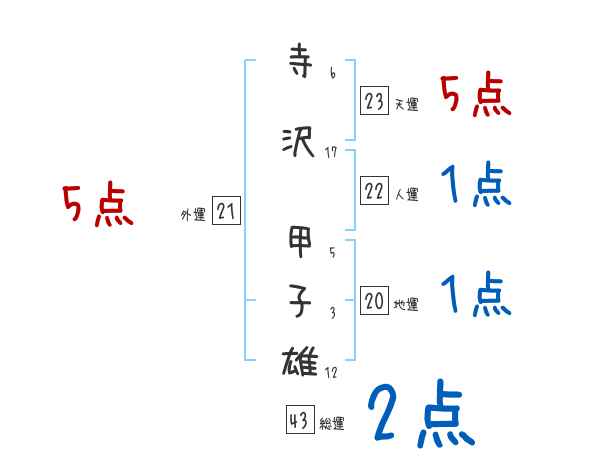 寺沢甲子雄さんの画数の鑑定結果