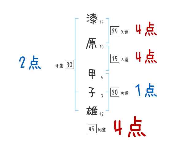 外運![]() | 漆原甲子雄さんの外運は30画の2つ星!浮き沈みの激しさに注意しましょう。 生活面を象徴する運勢です。外部から受ける影響力を表し、結婚運、家庭運や職場、環境への順応性を表します。 |