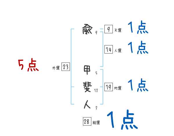 兪甲斐人さんの画数の鑑定結果