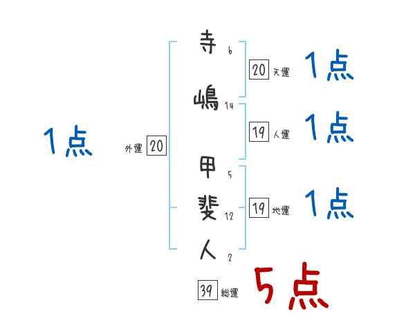 寺嶋甲斐人さんの画数の鑑定結果