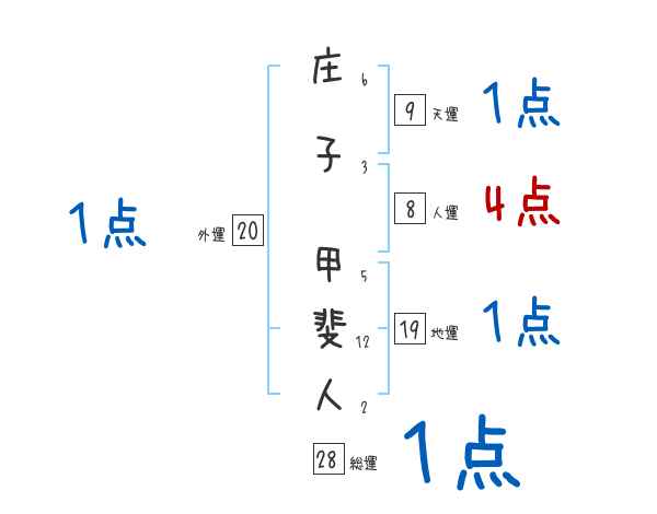 庄子甲斐人さんの画数の鑑定結果