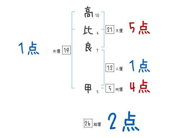 高比良甲さんの画数の鑑定結果