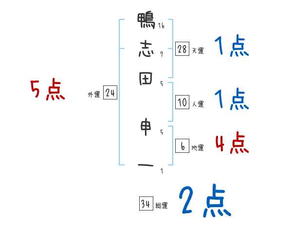 外運![]() | 鴨志田申一さんの外運は24画の5つ星!家庭運が良く順調な人生。金運にも恵まれる。 生活面を象徴する運勢です。外部から受ける影響力を表し、結婚運、家庭運や職場、環境への順応性を表します。 |