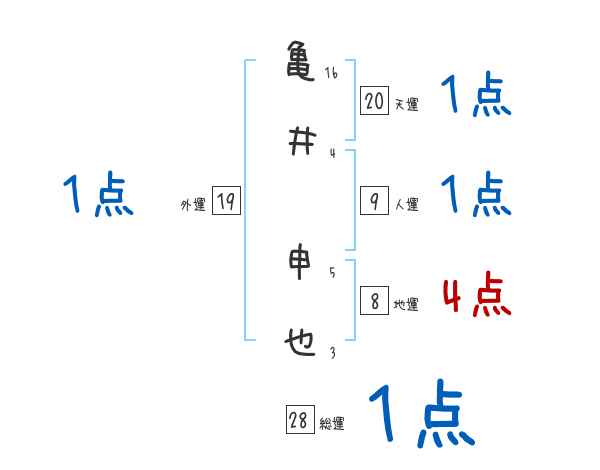 亀井申也さんの画数の鑑定結果