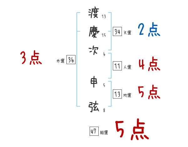 家系が持つ宿命的な運勢を表します。祖先から受け継いだ苗字ですので自分の力が及びません。家柄を象徴します。