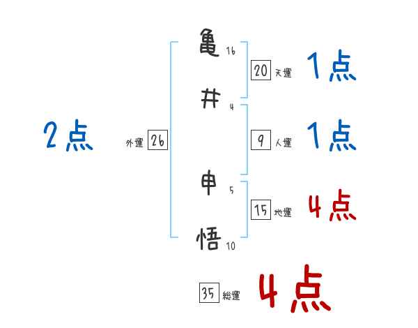 亀井申悟さんの画数の鑑定結果