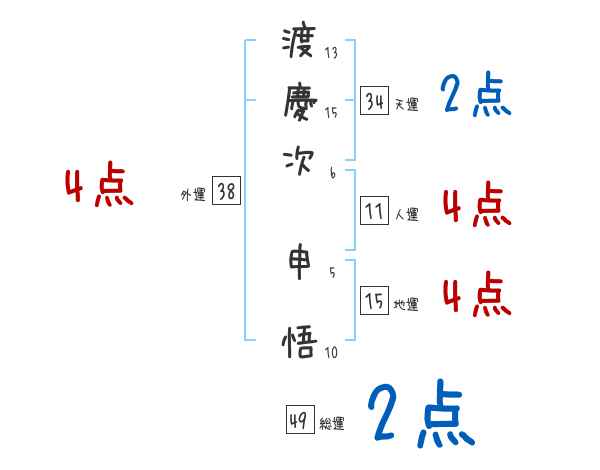 渡慶次申悟さんの画数の鑑定結果