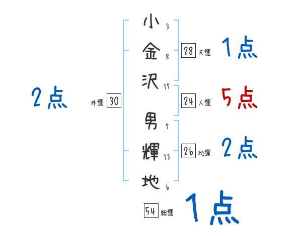 小金沢男輝地さんの画数の鑑定結果