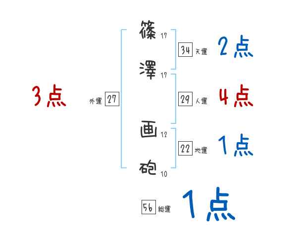 天運![]() | 篠澤画砲さんの天運は34画の2つ星!独創性に優れるが、自尊心が強く災難に注意しましょう。 家系が持つ宿命的な運勢を表します。祖先から受け継いだ苗字ですので自分の力が及びません。家柄を象徴します。 |