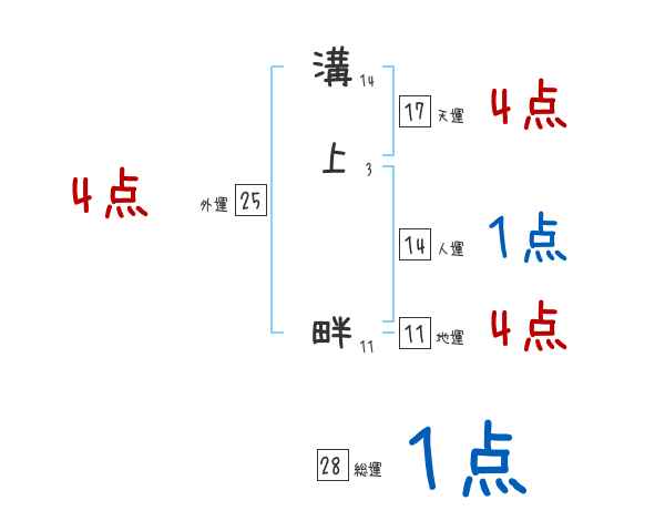天運![]() | 溝上畔さんの天運は17画の4つ星!積極的な行動力。地位を気づき財産を手に入れる。純粋な心と直感力。 家系が持つ宿命的な運勢を表します。祖先から受け継いだ苗字ですので自分の力が及びません。家柄を象徴します。 |