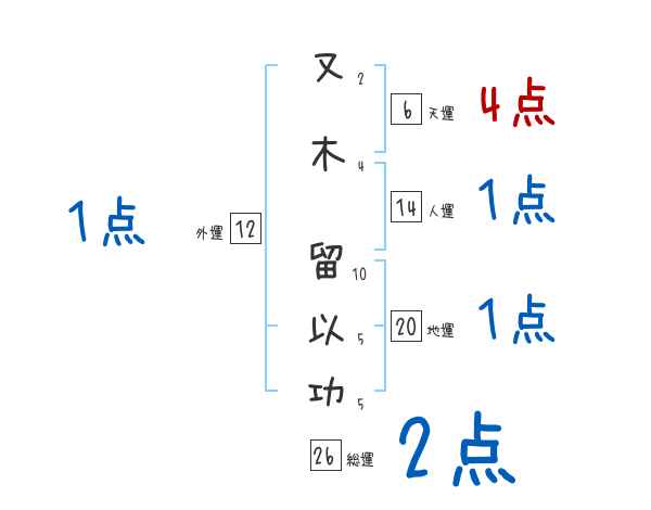 又木留以功さんの画数の鑑定結果