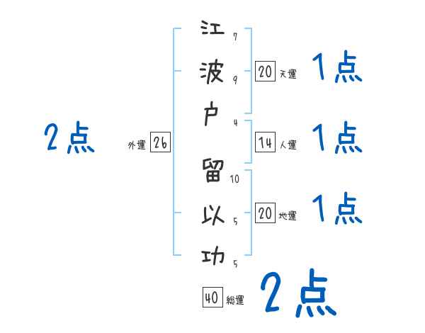 外運![]() | 江波戸留以功さんの外運は26画の2つ星!波瀾万丈かも。信頼できる人を大事にしましょう。 生活面を象徴する運勢です。外部から受ける影響力を表し、結婚運、家庭運や職場、環境への順応性を表します。 |