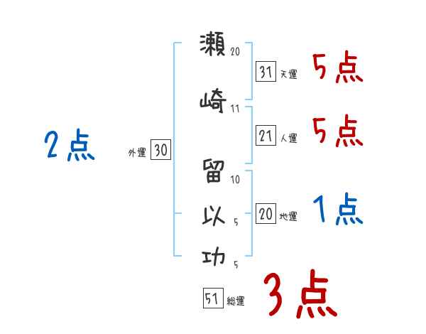 瀬崎留以功さんの画数の鑑定結果