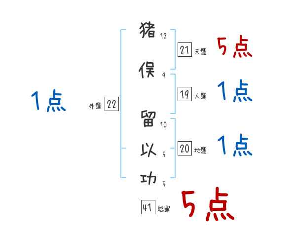 天運![]() | 猪俣留以功さんの天運は21画の5つ星!統率力がある。独立し成功する。名誉を手に入れる。 家系が持つ宿命的な運勢を表します。祖先から受け継いだ苗字ですので自分の力が及びません。家柄を象徴します。 |