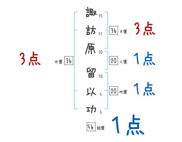 諏訪原留以功さんの画数の鑑定結果