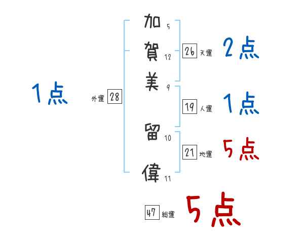 外運![]() | 加賀美留偉さんの外運は28画の1つ星!家庭環境に注意。スポーツで活躍できる能力があるかも。 生活面を象徴する運勢です。外部から受ける影響力を表し、結婚運、家庭運や職場、環境への順応性を表します。 |