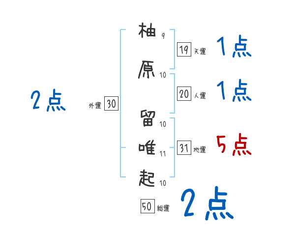 柚原留唯起さんの画数の鑑定結果