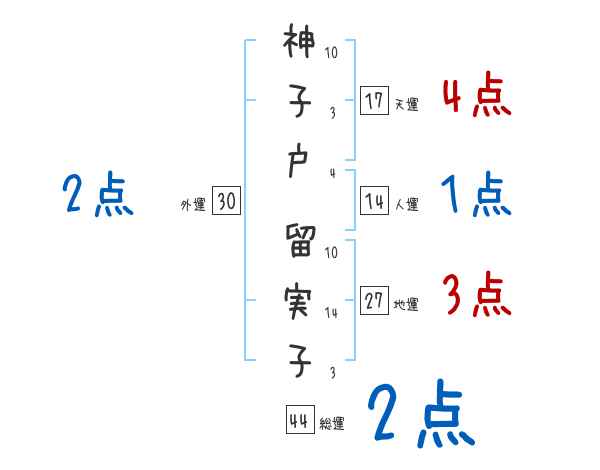 神子戸留実子さんの画数の鑑定結果