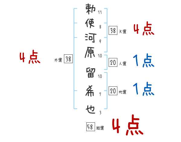 勅使河原留希也さんの外運は38画の4つ星