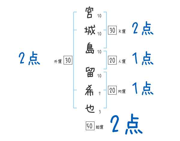 宮城島留希也さんの画数の鑑定結果