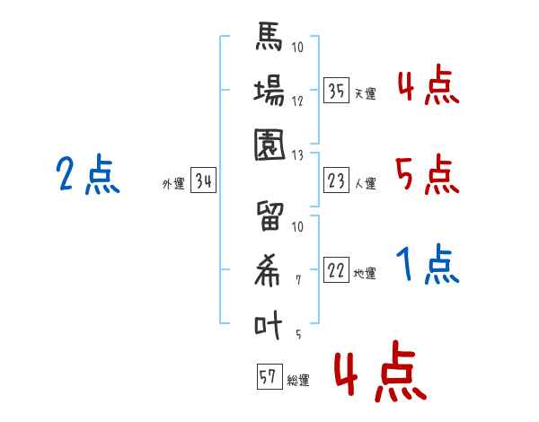 馬場園留希叶さんの画数の鑑定結果