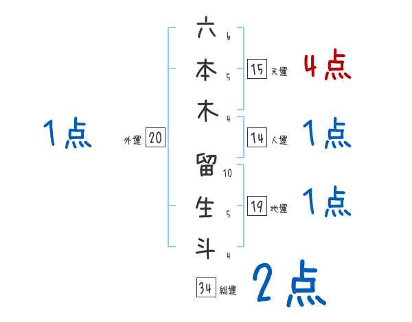 六本木留生斗さんの画数の鑑定結果