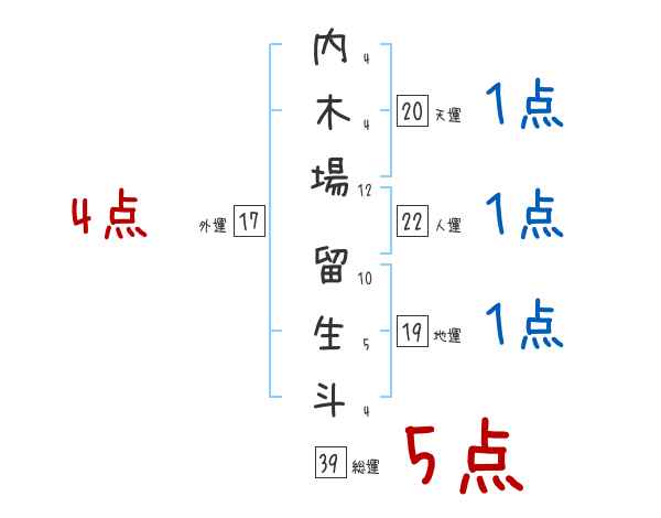 外運![]() | 内木場留生斗さんの外運は17画の4つ星!積極的な行動力。地位を気づき財産を手に入れる。純粋な心と直感力。 生活面を象徴する運勢です。外部から受ける影響力を表し、結婚運、家庭運や職場、環境への順応性を表します。 |