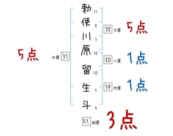 天運![]() | 勅使川原留生斗さんの天運は32画の5つ星!柔軟性があり成功する。チャンスが多く金運が良い。 家系が持つ宿命的な運勢を表します。祖先から受け継いだ苗字ですので自分の力が及びません。家柄を象徴します。 |