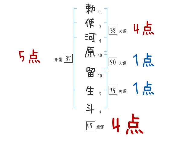 総運![]() | 勅使河原留生斗さんの総運は57画の4つ星!向上心があり人望がある。地位を得る。 あなたの人生を表す1番重要な運勢です。生涯を通じて影響する総合運となり、主に50歳以降の晩年期に影響を及ぼします。 |
