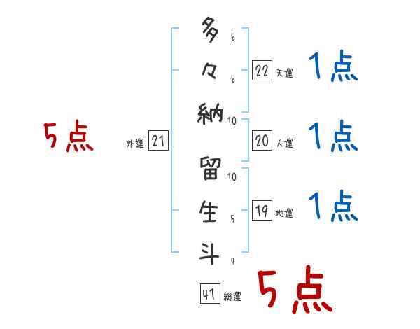 総運![]() | 多々納留生斗さんの総運は41画の5つ星!大志を抱き、目標に向かって実力を発揮し達成する。温和な性格。 あなたの人生を表す1番重要な運勢です。生涯を通じて影響する総合運となり、主に50歳以降の晩年期に影響を及ぼします。 |