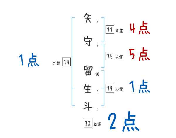 矢守留生斗さんの画数の鑑定結果
