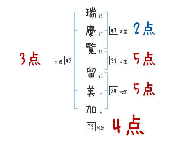 瑞慶覧留美加さんの画数の鑑定結果