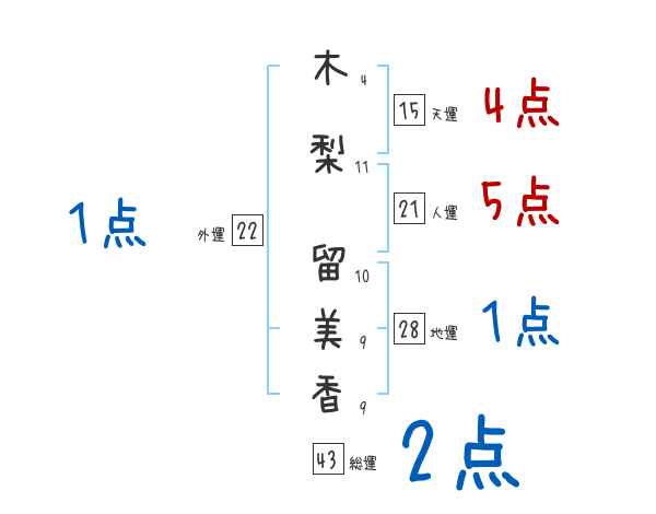 木梨留美香さんの画数の鑑定結果