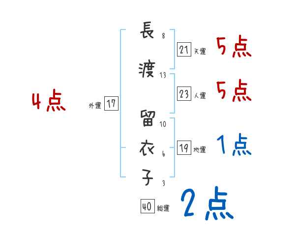 長渡留衣子さんの画数の鑑定結果