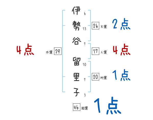伊勢谷留里子さんの画数の鑑定結果