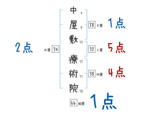 中屋敷療術院さんの画数の鑑定結果
