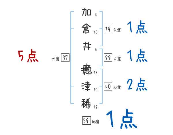 外運![]() | 加倉井癒津稀さんの外運は37画の5つ星!努力家で順応性に優れる。現実的な考え方ができ忠実に物事をこなす。 生活面を象徴する運勢です。外部から受ける影響力を表し、結婚運、家庭運や職場、環境への順応性を表します。 |