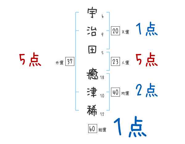 宇治田癒津稀さんの画数の鑑定結果