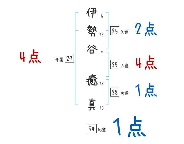外運![]() | 伊勢谷癒真さんの外運は29画の4つ星!完全主義で才能がある。厳格な心の持ち主。 生活面を象徴する運勢です。外部から受ける影響力を表し、結婚運、家庭運や職場、環境への順応性を表します。 |