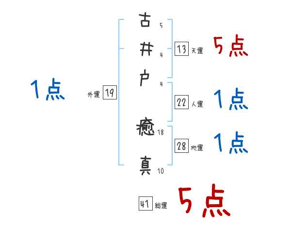 古井戸癒真さんの画数の鑑定結果