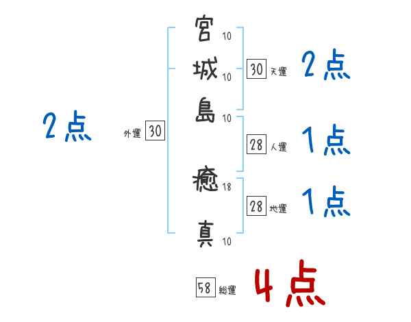 宮城島癒真さんの画数の鑑定結果