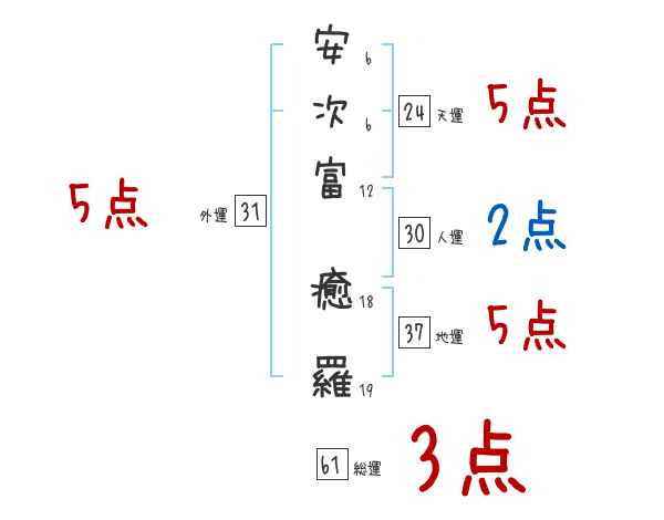 安次富癒羅さんの画数の鑑定結果