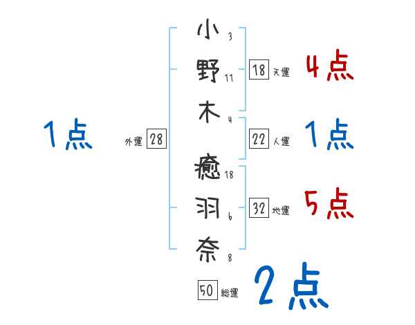 小野木癒羽奈さんの画数の鑑定結果