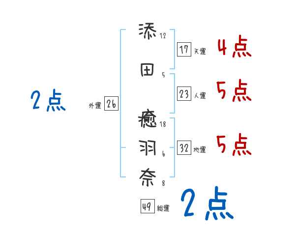 天運![]() | 添田癒羽奈さんの天運は17画の4つ星!積極的な行動力。地位を気づき財産を手に入れる。純粋な心と直感力。 家系が持つ宿命的な運勢を表します。祖先から受け継いだ苗字ですので自分の力が及びません。家柄を象徴します。 |