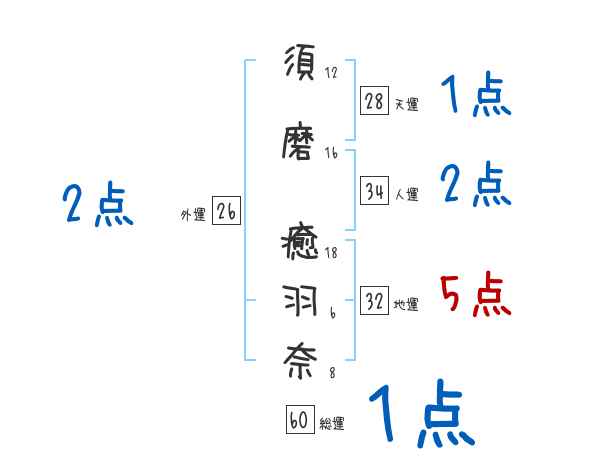須磨癒羽奈さんの画数の鑑定結果