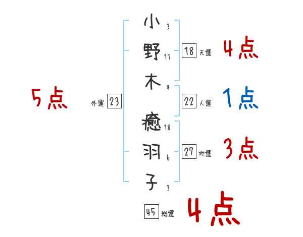 小野木癒羽子さんの画数の鑑定結果